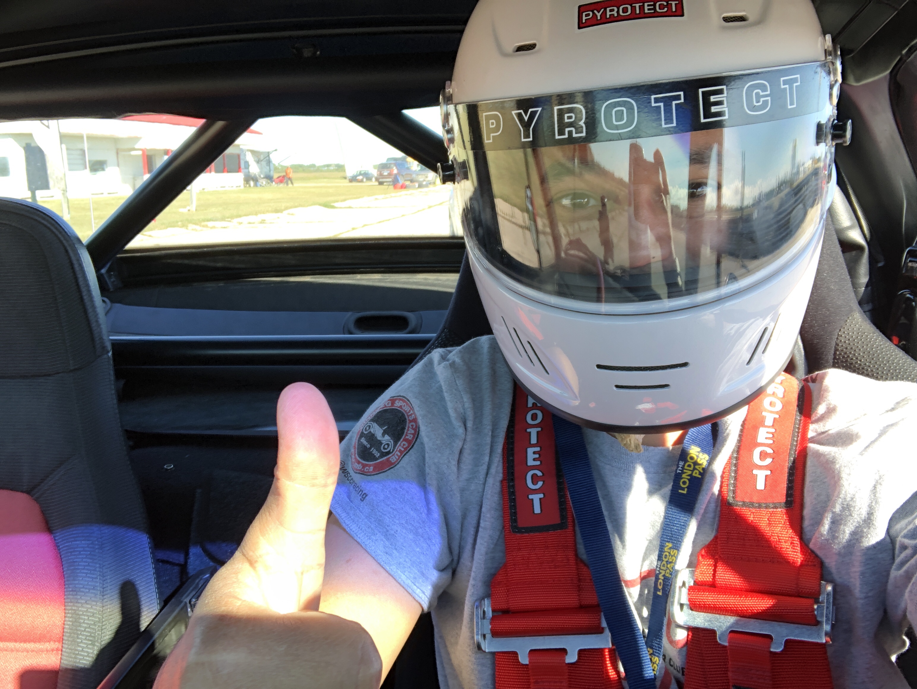 I’m writing this a month after the event so my memory is a bit foggy…first race session with the roll bar and 5 point harness…first impressions are the roll bar does make the car seem more rigid. I even got a couple comments from one of the corner marshalls who said the same. The harness works well and I had to learn that it needs to be extremely tight or else you will move around. Once I got it buckled in I was locked in tight and could concentrate on driving instead of bracing myself for every corner. My times also were a bit more consistent in the high to mid 1:13. Saturday weather was great, Sunday afternoon was rain. I only went out once in the rain.