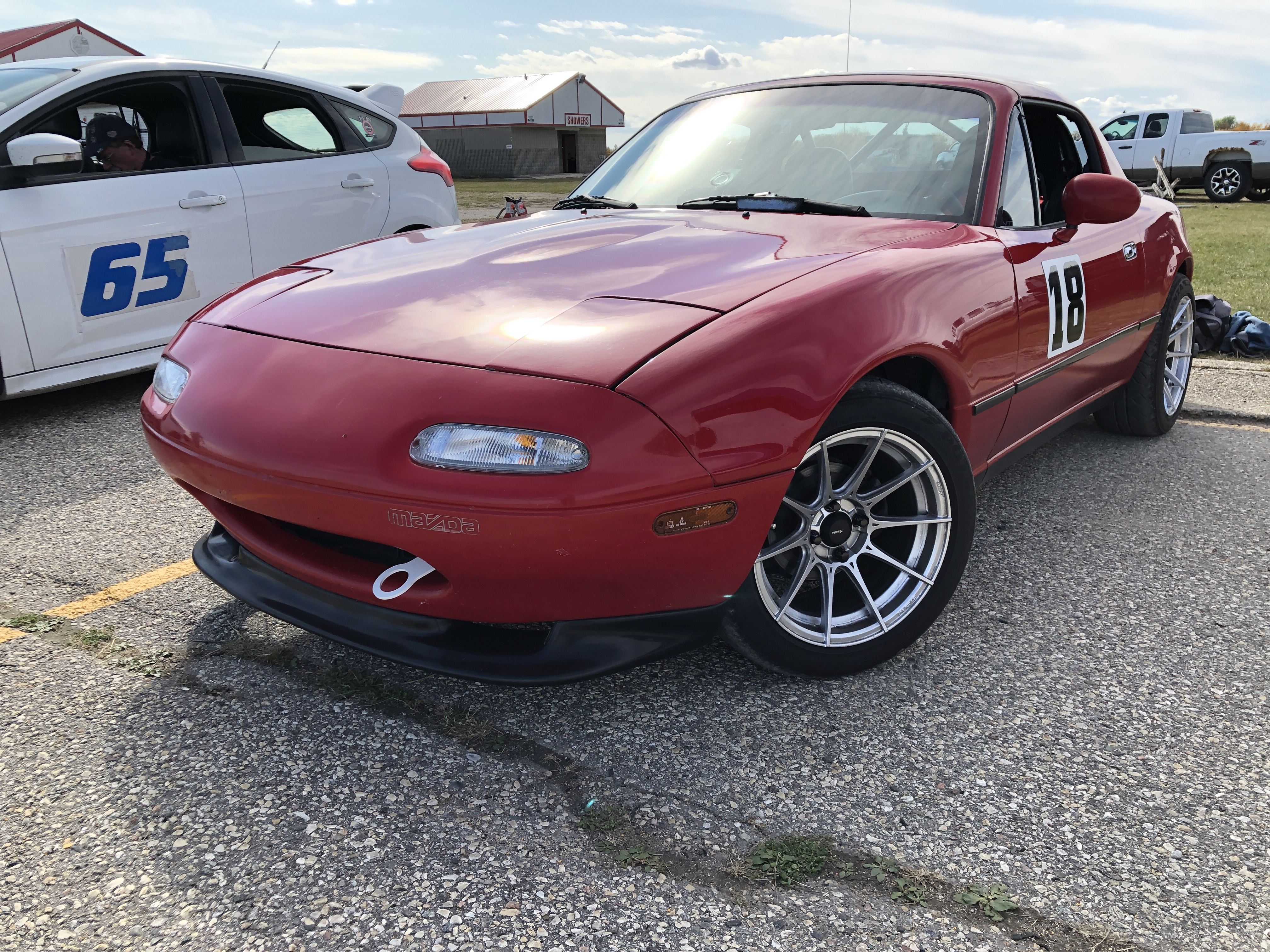 In case I end up going on an off track excursion and need assistance out of the weeds, I decided to install front and rear tow hooks. Bought a set from Flyin Miata and they cost way too much for what you get. Install was easy. Not much else to say.