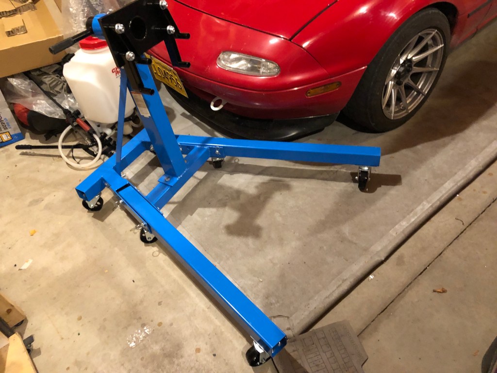 A friend found a used 5.3LS engine for me. It’s not in great shape but got me thinking more about doing a LS swap. Picked up this engine stand from Princess Auto to start taking the LS engine apart.