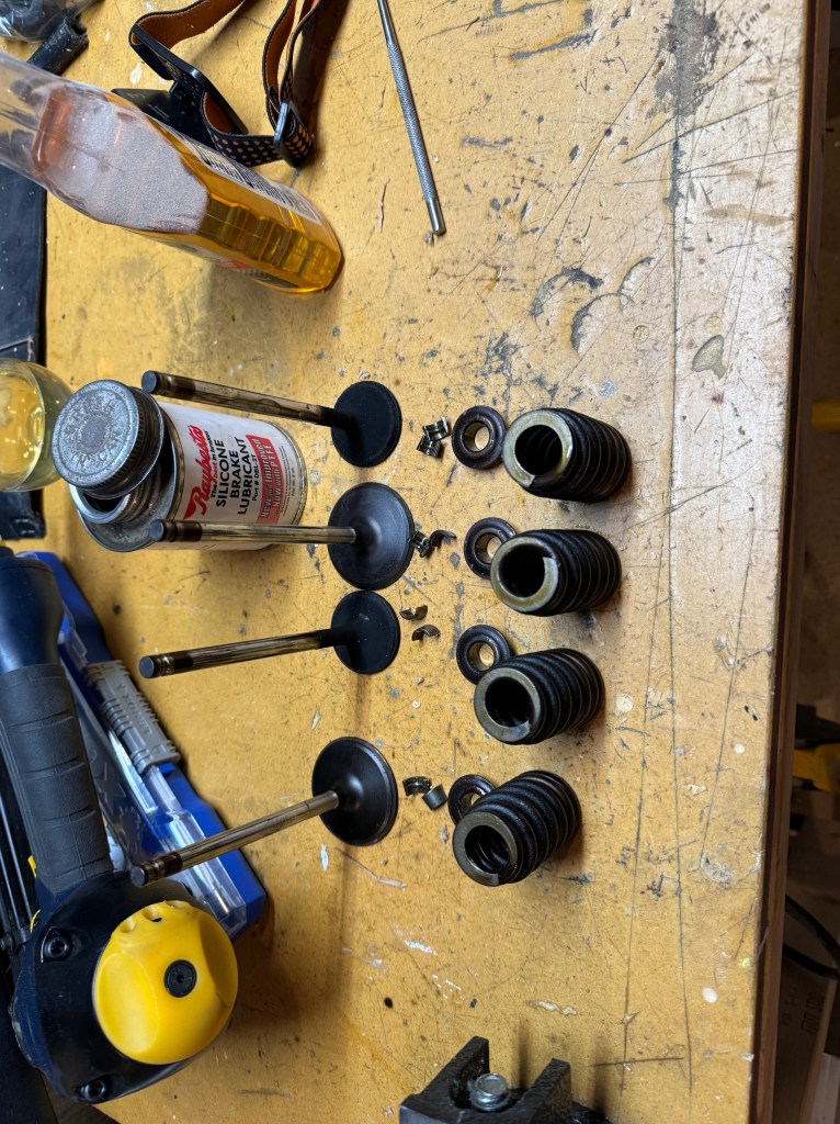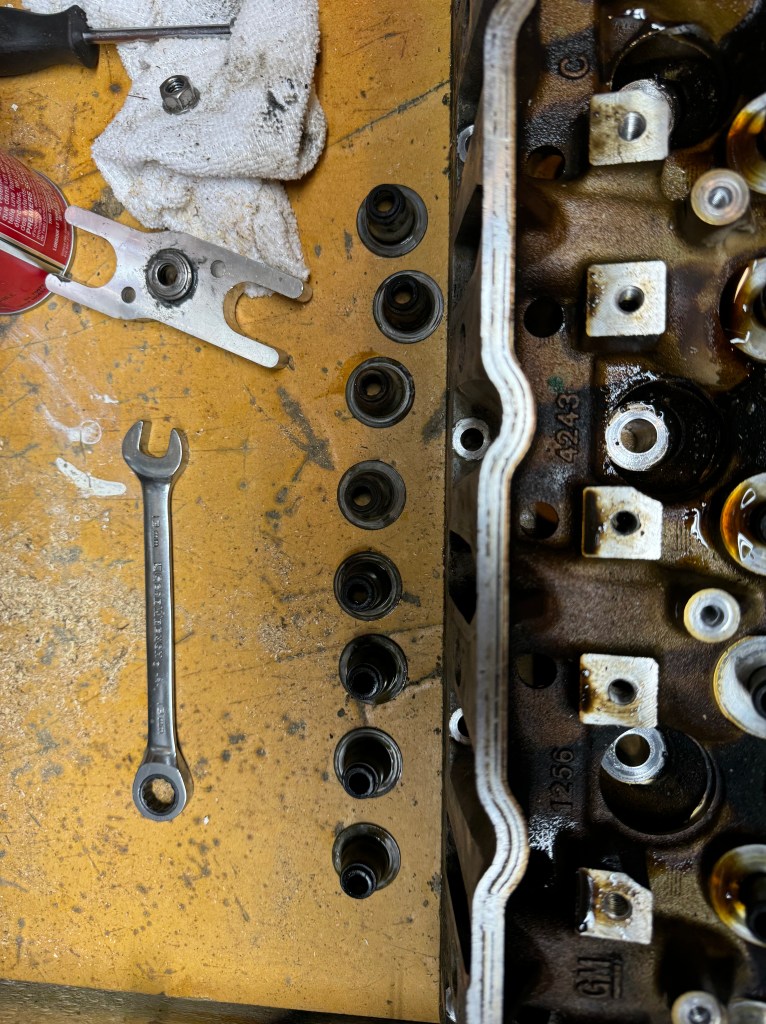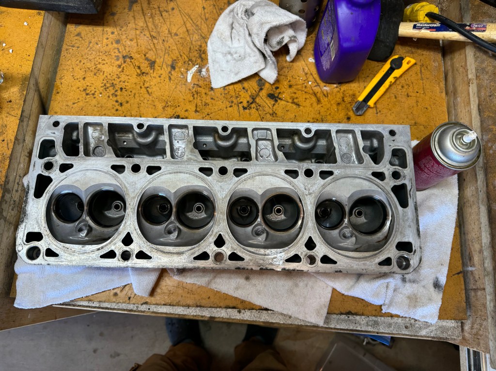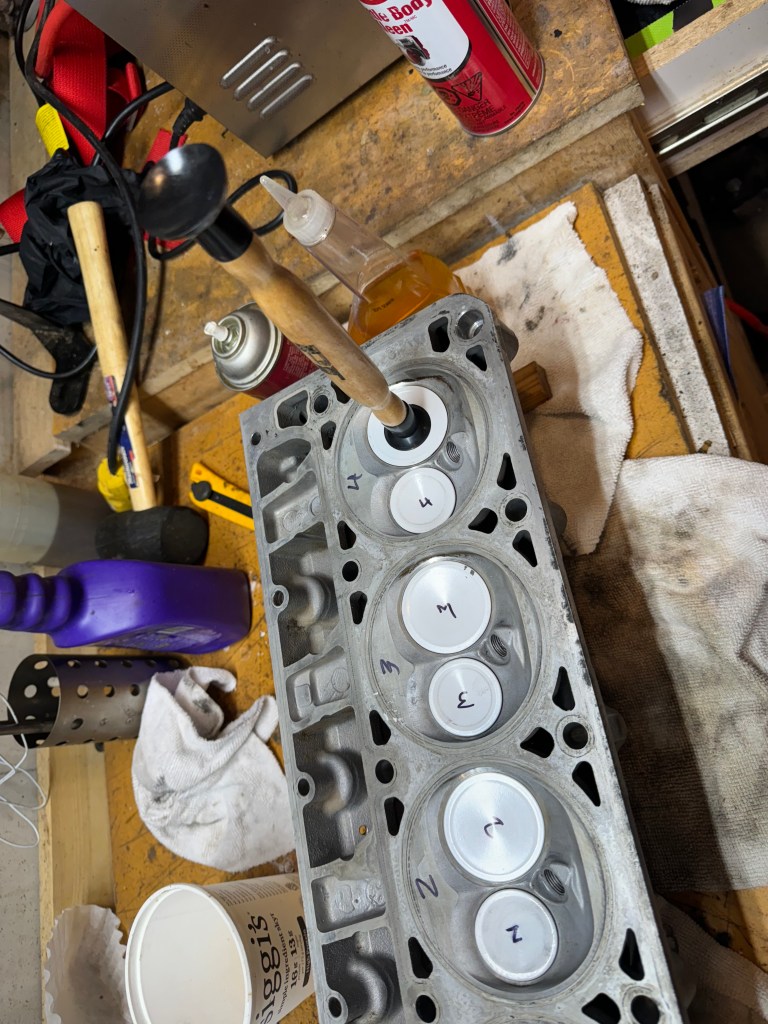 Took apart the valve heads and removed the valves, springs and valve seals. used a tool I got off amazon, that worked ok, but I needed to buy an better qulality threaded rod that wouldn’t strip from the local bolt supply store. Glad I got the threaded rod, because it too would strip and I needed to cut new lengths from time to time.