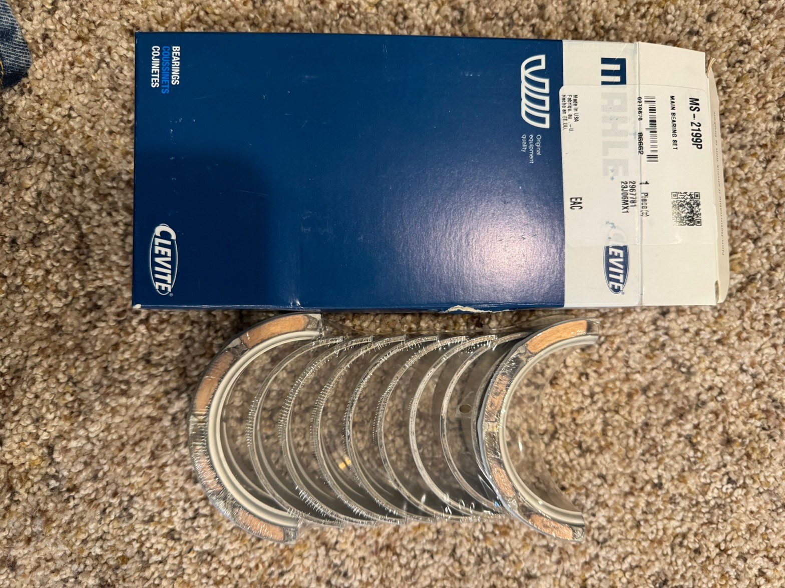 April 8, 2024 After giving the engine a last wipe down I installed the original camshaft, then the new Mahle/Clevite MS2199P crankshaft bearings from rockauto.com, and the crankshaft. torqued everything down and it spins freely. Also it was eclipse day.