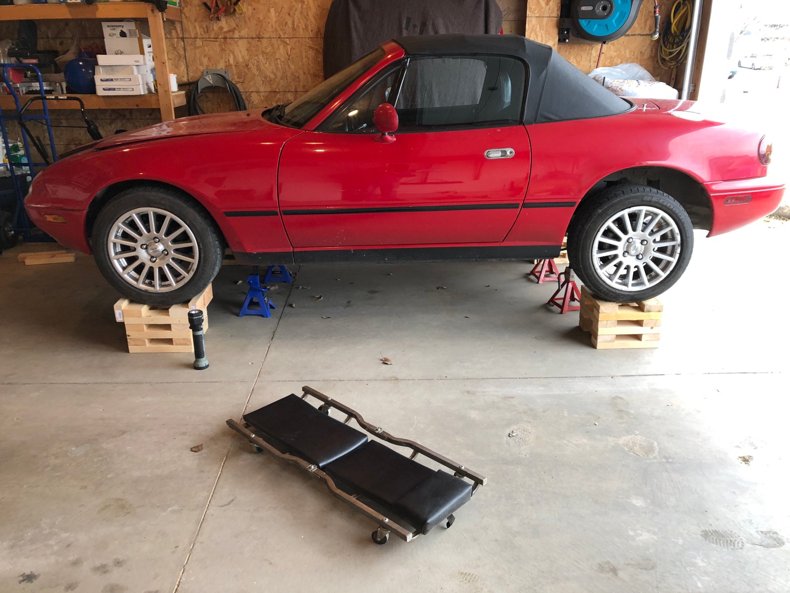 Decided to hang the hardtop on the wall so it’s out of the way. Took 2 screw in garage wall hooks (I think these are used for hanging bicycles), cut off the ends with a dremel, screwed them into the wall, then hung the roof by the chrome latches. There is debate on the internetContinue reading “Hardtop Hanger”